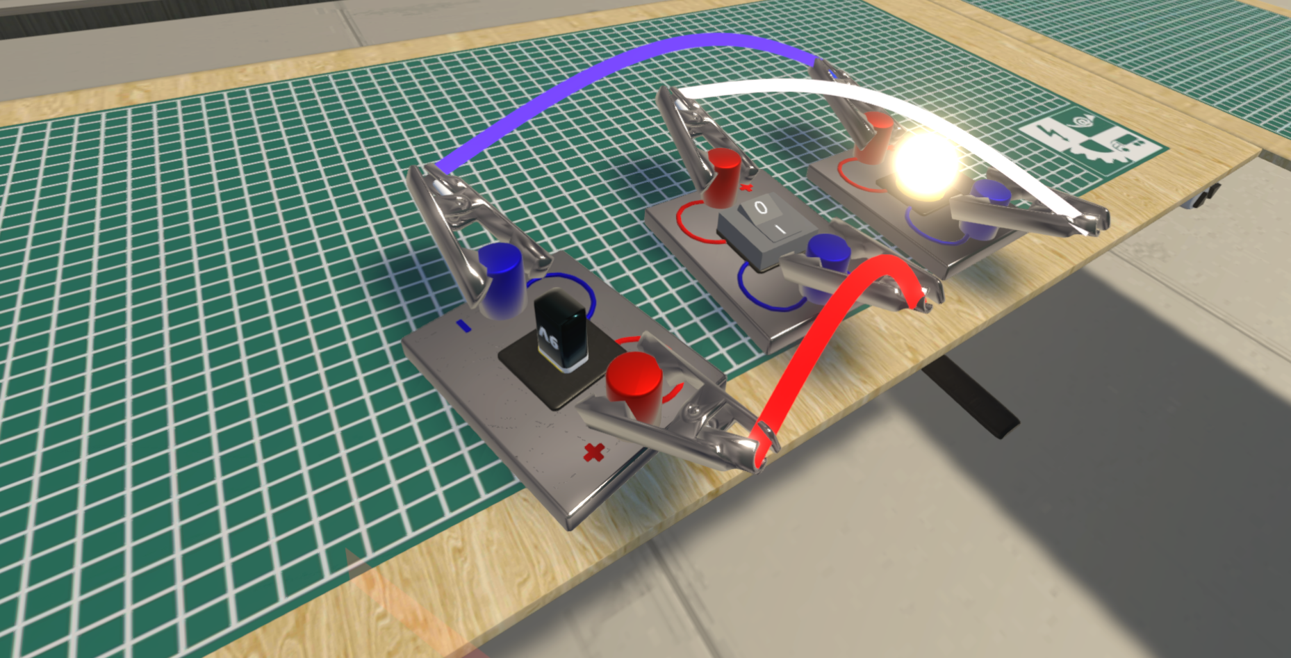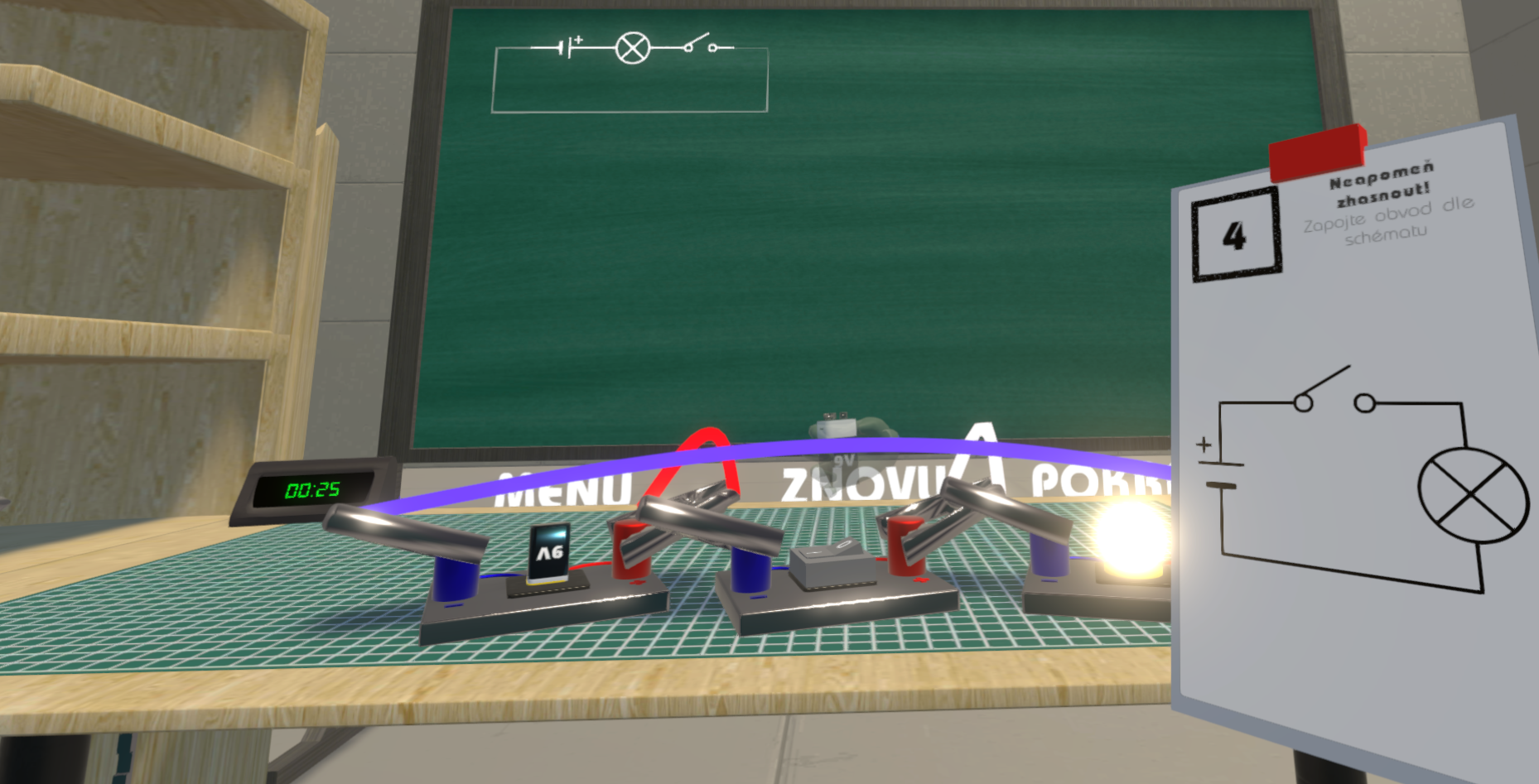 VR Modul Slaboproud žáka naučí zacházet se základními elektro součástkami, jako je baterie, žárovka, rezistor, spínač, potenciometr. Kromě samotného zapojení do sériového obvodu také zjistí, jak je to s distribucí proudu v obvodu.